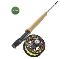 This Orvis Helios 3 outfit includes a Helios 3 rod and Mirage reel (5wt H3F with a matching weight reel).