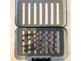 24 flies and box by long-time angler and dedicated volunteer, Joe Burke. Power ants, size 14.