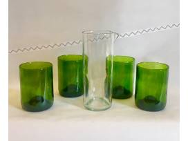 These unique glasses are hand cut from wine bottles and an incredibly stustainable way to enjoy a drink of anykind. The small carafe pitcher is perfect for serving lemonade or a specialty cocktail while entertaining guests. Wine Punts is a local, family-owned company that started off as a college project and has grown into an environmentally impactful company through responsible waste recycling programs. Partnering with local hotels and restaurants they are able to reduce waste and give these bottles a second life. Our glassware comes from those like you, people wanting to make a difference in the world by recycling.
