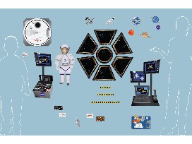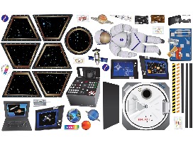 Create your scene Space Station set. 38" wide x 24" high. These ultra reusable, high quality, soft fabric feel decals are a great way to add fun to your world. Good for any non-porous surfaces, walls, windows, water bottles, floors, furniture.