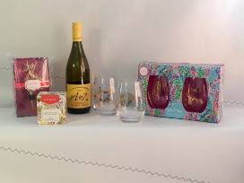 Downtown Denver's own local boutique winery and tasting room would love to host you and nine of your friends for wine tasting party! Includes 5 flight tasting per person. Expires 1/31/20, gratuity not included. Meanwhile you can enjoy this perfect set up for a summer cocktail hour. 4 Lilly Pulitzer stemless wine glasses, 1 Lilly Pulitzer Seahorse corkscrew, 1 salted citrus bellini candle and bottle of A to Z Pinot Gris wine.
