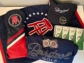 Barstool Sports Golf swag includes: large T-shirt, hat, golf towel, club cover, ball markers and set of 12 Taylor Made golf balls (see photos)