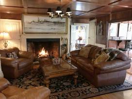 The Newcomb Tavern was built in 1693 and is a historic Colonial Inn that boasts of modern amenities such as a gourmet kitchen, an elegant dining room, six fireplaces, Venetian chandeliers, three large living rooms, an Old English bar, and lush terraces that overlook The Secret Garden fountain and tavern grounds. Each room is characteristically decorated with a specific motif in mind with wonderful views of the Town and Church Steeple. Bathrooms, libraries, and an entertainment room with a big screen TV and 4 other TVs are available.