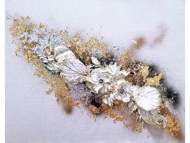 This "Golden Flowers" is plaster, molding pastes, epoxy resin, acrylic & golf paints on canvas board, 20" x 30", created by Yulianna Marusine. Yulianna Marusine is a local artist in Toronto, Canada and was born in Odessa Ukraine. Her passion for art began at the young age of 3 through her pencil drawings. Yulianna has mastered multiple talents throughout her life time such as ballroom dancing, being a dentist, an actress through ACTRA Toronto, and having multiple digital photography and editing skills. *Kindly see the photo attached to item for Yulianna's inspiring story. Value $2,000