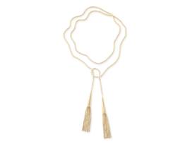 The Phara Lariat Necklace in Gold is a versatile go-to whether it's worn layered or on its own. Featuring fringe tassels and a long metallic chain, this long necklace can be worn multiple ways. Fall in love with the versatility of the Phara Lariat Necklace in Gold.