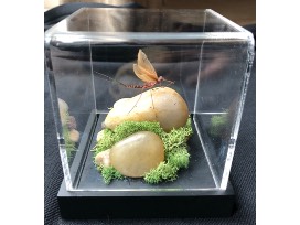 enclosed in a clear lucite case