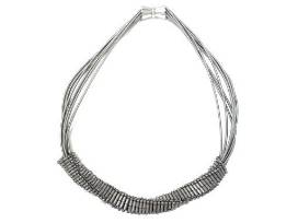 This short wire necklace with twisted silver hematite is made by Sea Lily. It is both stunning and unique and sure to compliment just about any outfit.
