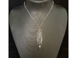 Blue Coral Pendant with blue lapis and pearl bead on 18" Sterling Silver Chain