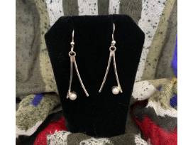 Pearl and Sterling Drop Earrings.