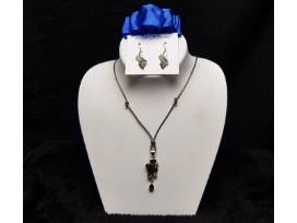 Necklace- Beautiful Sterling Silver Pendant with clear and smokey topaz swarovski glass and pyrite stones displayed on Grey Leather "chain". Wear with your aged Silver earrings