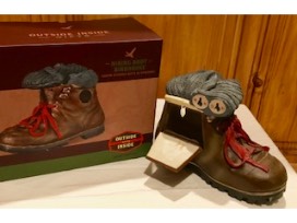 0Gift set from The Cowhand in Woodland Park. Includes a Hiking Boot Birdhouse and Raccoon Ceramic Hook.
