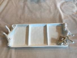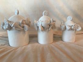 3 Piece White Shell Canister Set, Turtle Bowl and Coral Handle Serving Dish from Wilford & Lee Home Accents
