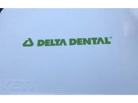 This Delta Dental logo'd YETI Tundra 35 is the right size for personal hauls or food for a small crew. It boasts up to three inches of PermaFrost Insulation and a rugged rotomolded construction for optimum adventure performance. And it fits nicely in an inner tube, making it the perfect, portable cooler to take tubing down the river. Delta Dental logo on lid.