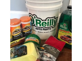 O'Reilly Auto Parts donated a handy dandy car washing package including a bucket, 1 gallon concentrated car wash soap, 3 pack of ArmorAll wipes, turtle wax, sponge, and 5 pack of auto cloths.