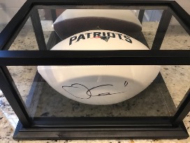 This item is for a Autographed Julian Edelman football in a mirrored back display case.