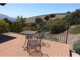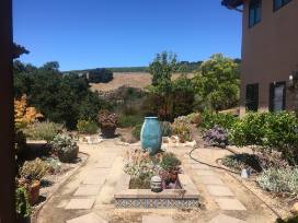 This charming, private 3-bedroom fully equipped Spanish style guest house is nestled in an olive grove 900 feet above the Carmel Valley. It overlooks Garland Regional Park and the Ventana Wilderness, Talbott's premier vineyard, and a beautifully landscaped yard of succulents and drought-tolerant plants. The house has three bedrooms (queen beds), three baths (one bedroom is on a lower level), a fully equipped kitchen, and open living and eating area. It has a deck overlooking the vineyard. Access to the main house swimming pool is included - it is solar heated during the summer and fall. There is ample parking. Carmel Valley is central to excellent wine-tasting from the Santa Lucia Highlands region (Pinot Noir, Chardonnay) in Carmel Valley Village. The house is 8 miles inland from Carmel-by-the-Sea, and in close proximity to Pebble Beach, Big Sur, and Monterey, even though it feels worlds away as witnessed by Milky Way on a clear night.