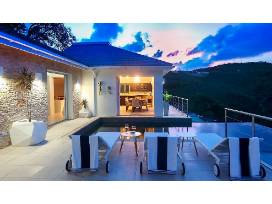 Xhale is a contemporary designed villa, stunningly furnished to embody all modern luxuries including an infinity pool, fire-pit, gym and an infinity yoga deck. Each of the villa's four en-suite rooms is uniquely designed with private balconies that open up to magnificent ocean views. The villa has a modern kitchen that is furnished with all the high-end equipment and appliances guests would need to prepare gourmet meals. The kitchen and dining room has an open concept with sliding doors that open to a terrace and ensures you enjoy the cool island breeze and the amazing vistas of the Caribbean Sea. There is also the option of dining outdoors on the extended deck which is fully furnish with outdoor dining furniture, barbecue grill and a fire pit.
