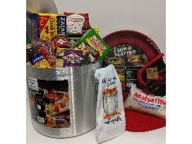 Louisiana Saturday night basket includes a stock pot, crawfish serving trays, entree mixes and the fixins, linens, and more. It also includes a $30 gift card to Bergeron's