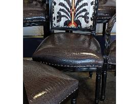 All have charcoal croc leather seats, ikat inside back and rust suede outside back