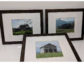Three framed barn photographs.
