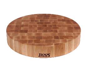 Instantly feel more like a professional chef when you put this brand-new John Boos Black Walnut Chopping Block in your kitchen. Crafted in the U.S. of solid hardwood sourced from sustainably managed forests, this 18" diameter x 3" thick board (Model #WAL-CCB183-R BOOS BLOCKS ) features iconic and durable end grain construction. Boos Boards and blocks are the preferred cutting surfaces of top chefs and restaurants around the world. They are also safer for fine cutlery than plastic boards. You'll also take home everything you need to keep this board in perfect condition, including Boos Mystery Oil, Board Cream, and applicator (Model #MYSCRMAPPGP Care Kit) that will replenish, restore, and protect all your butcher blocks and cutting boards.