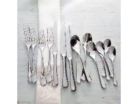 • Cutlery includes: dinner fork, dinner knife, teaspoon, soup spoon, and dessert fork