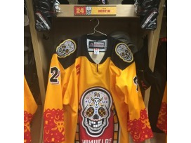 These game-worn Chimuelos jerseys are the first of their kind, introduced at the start of the 2018-19 season as part of a team identity transformation in honor of Dia de los Muertos. A 'chimuelo' roughly translates to a 'toothless man', a playful nod to the missing chiclets in a hockey player's smile. These jerseys were worn on five occasions this season, representing San Antonio's rich Hispanic heritage on the ice at the AT&T Center.