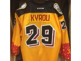 These game-worn Chimuelos jerseys are the first of their kind, introduced at the start of the 2018-19 season as part of a team identity transformation in honor of Dia de los Muertos. A 'chimuelo' roughly translates to a 'toothless man', a playful nod to the missing chiclets in a hockey player's smile. These jerseys were worn on up to five occasions this season, representing San Antonio's rich Hispanic heritage on the ice at the AT&T Center.