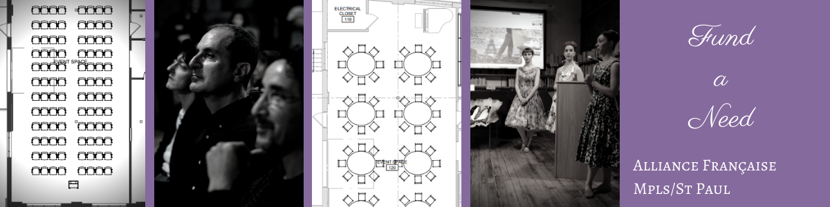 In our new building, our event space will offer additional seating and space for performances, lectures, film screenings and cultural exchange. To serve our community and to contribute to the Alliance's future cultural programming, we are asking you to contribute to our purchase of an audio-visual system for the Grande Salle. Your gift today will enrich our events with enhanced presentation abilities, to better celebrate the global diversity of the French language. In addition to helping the Alliance Française continue as a leader in cultural exchange, your donation will also support the international communities and smaller non-profit organizations with whom we share our facilities. To succeed in these goals, we must raise over $18,000.