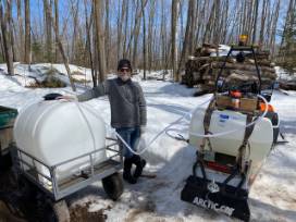 This year, Karen and Ed were able to make about 7 gallons of syrup. You could be the lucky person to take home two bottles of this delicious maple syrup. They believe that this year's syrup is particularly delicious and beautifully clear, and they wish the lucky winner bon appétit !