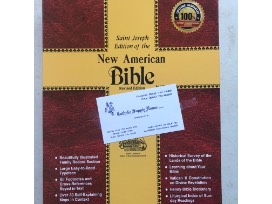 In addition to the beautiful statue, comes a Saint Joseph Edition of the New American Bible. Which was donated by: