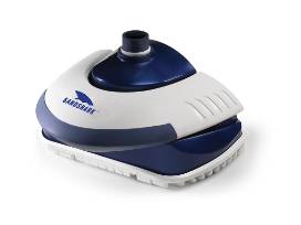 The SandShark cleaner combines powerful scrubbing and vacuuming to make tedious manual cleaning a thing of the past. The footpad features multiple rows of squeegee-like fins, which easily dislodge stubborn dirt and debris. Cuts a 12-in.-wide cleaning path and easily cleans gunite, fiberglass and vinyl surfaces in all types of inground pools.