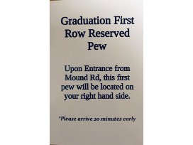 Item: Entire Front Pew, Right Side upon Entering Church (Stage Left)