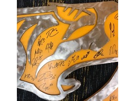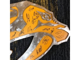 Large Predators head logo autographed by members of the 2018-2019 Nashville Predators (36 .5 x 19, measured from longest points)
