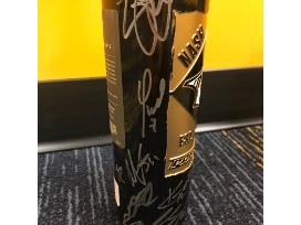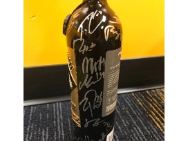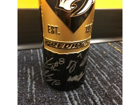 Preds logo etched wine bottle autographed by members of the 2018-19 Nashville Predators Team