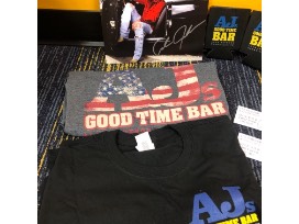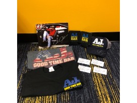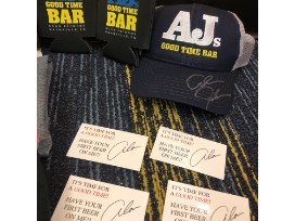 This package includes a hat autographed by Alan Jackson, an 8x10 photo autographed by Alan Jackson, two (2) AJ's Good Time Bar t-shirts (both M), two (2) AJ's Good Time Bar koozies and four (4) free beers at AJ's Good Time Bar.