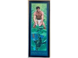 To Hawaiians, kalo was not only a source of food, it was also what bonded them to their culture and their beliefs about the creation of man. According to the Kumulipo, the creation chant, the union of Wakea (sky father) and Papa (earth mother) created the Hawaiian islands. Together they had a daughter, Ho'ohokulani. Through Wakea's relationship with his daughter, Ho'ohokulani, they had a son who they named Haloa-naka but he was stillborn and so his body was buried. Out of his body sprouted the first kalo plant. They then had another son together, healthy and strong, who they also named Haloa. The younger Haloa would respect and care for his elder brother and in return, his older brother would provide him sustenance and nourishment, and so the kalo grew abundantly. This younger son became the first human to live in the islands, and from him, all Hawaiian people are descended. Limited edition signed by the artist Nelson Makua of Hilo, HI and custom framed by Tom Itomo, Artrageous Fine Framing. Measures 14" x 37.5".