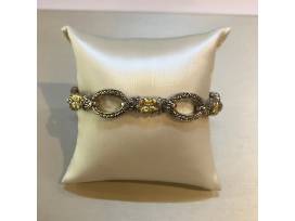 1Lady's sterling silver and 18kt yellow gold "Barbara Bixby" diamond bracelet containing 6 round brilliant cut diamonds weighing 0.12ct total weight. Average Color: H-I; Average Clarity: VSI-VS2. Style #BBB662D