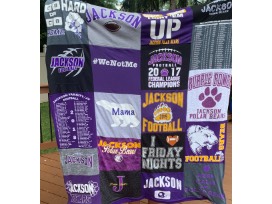 Stay warm at the game or at home with this custom made t-shirt quilt. T-shirts are all Jackson or football related.