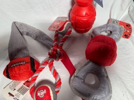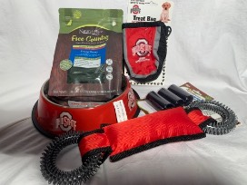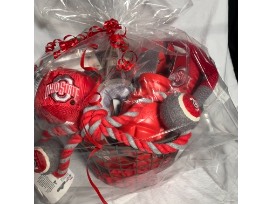OH-IO. Even your pup can get in the Buckeye spirit with this OSU Dog Basket. Items include bowl, toys, bags and