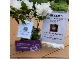 Find you own treasure to begin your home decor project with this $300 Gift Certificate to Miller's Home Furnishings, a beautiful decoration centerpiece from Miller's and from Cottage Draperies, $200 off custom curtains, bedding or blinds