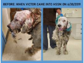 You may recognize Victor from his previous Chicken Soup video back in July. Victor was brought in by Animal Control as a stray and obviously had a difficult 4 years of life before finding his way to the shelter. HSSM vets and staff spent weeks and weeks with him to get him where he is today and now he needs YOU!