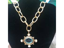 Susan Shaw Venetian Glass Aqua Bee Elegant Pendant Necklace