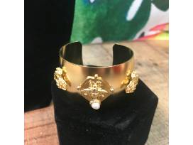 Susan Shaw Gold Bee Cuff w/Handset Genuine Freshwater Pearl-One size fits most-Handcast 24K gold plated