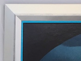 It was professionally cleaned and re-varnished in 2019. Framed in an eye-catching metallic blue-green and lustrous silver with mitered corners, using archival quality materials.