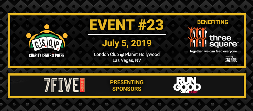 The Charity Series of Poker (CSOP) is proud to announce our 23rd charity event on Friday, July 5, 2019 in Las Vegas during the World Series of Poker Main Event. The $300 buy-in ($100 rebuys and $100 add-ons) CSOP23, dubbed Full Houses of Food, is open to the public and will take place at London Club on "the Mezz" at Planet Hollywood.