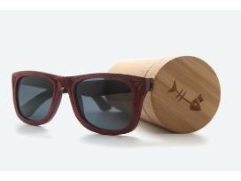 Hetmans creates handmade wooden and leather goods. This basket includes a leather wallet, business card holder, glasses case, and a pair of wooden sunglasses.