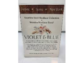 Take home three handcrafted necklaces along with a beautiful wooden necklace display by Violet and Blue.