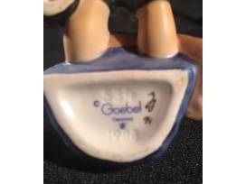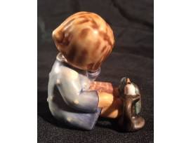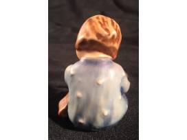 Goebel figure of Sitting Girl. It is 2 1/2 inches tall and it does not indicate Hummel in the markings. Google search notes this is a Hummel #534 called "A Nap".
