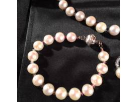 Salt water South Sea White pearls (10/11 mm) alternated with faceted 4mm sapphires (multi colored).